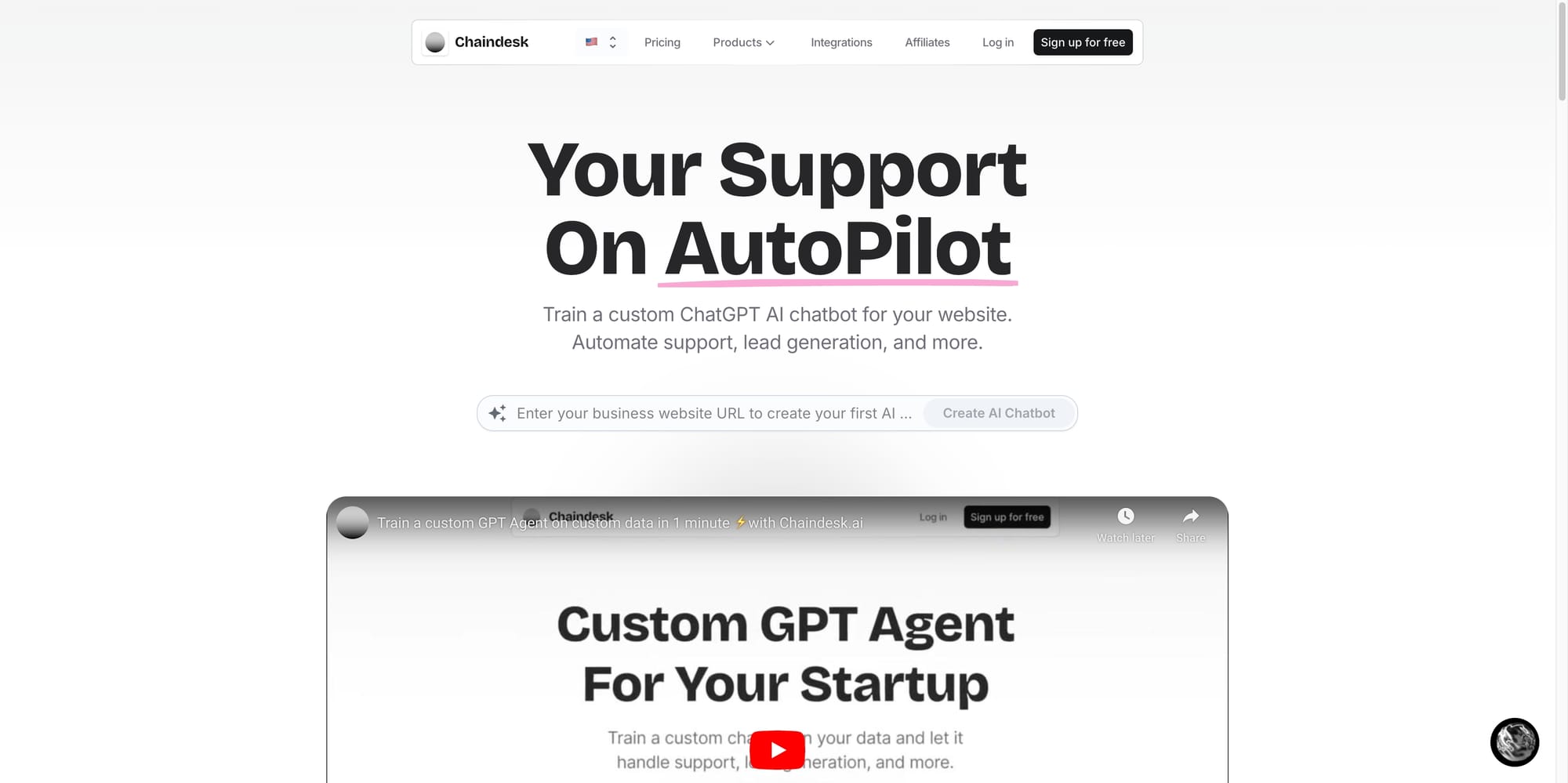 Chaindesk | ✅ | Paid plans start from $25/month | Website for all systems |