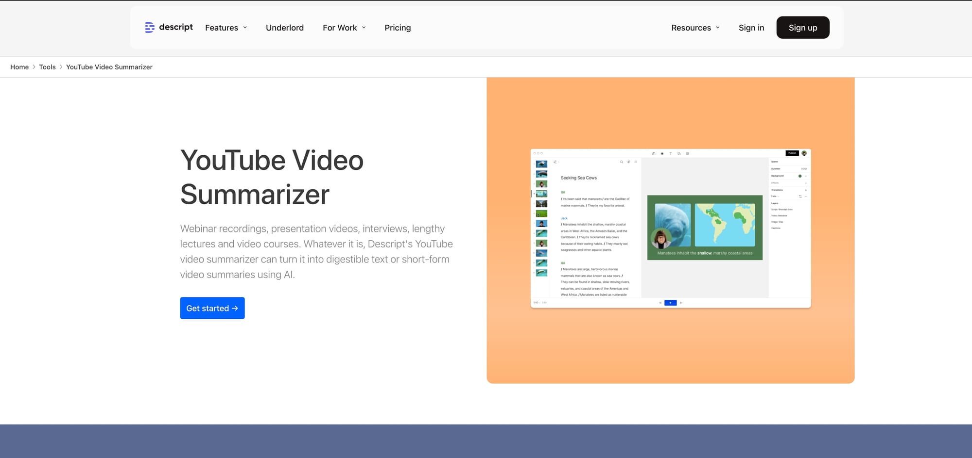 Descript Summarizer is part of the broader Descript platform, popular because it comes with great video editing capabilities. In this feature, present summarization helps a lot of content creators and marketers.