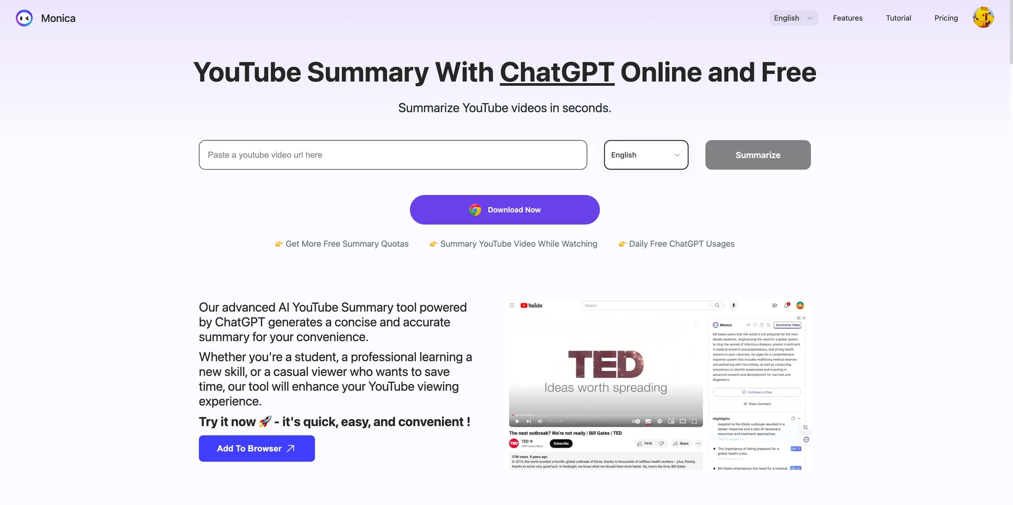 - Cross-platform functionality: Monica is not limited to YouTube. It can summarize content from various sources, including blogs, news articles, and academic papers, making it a comprehensive tool for content consumption.