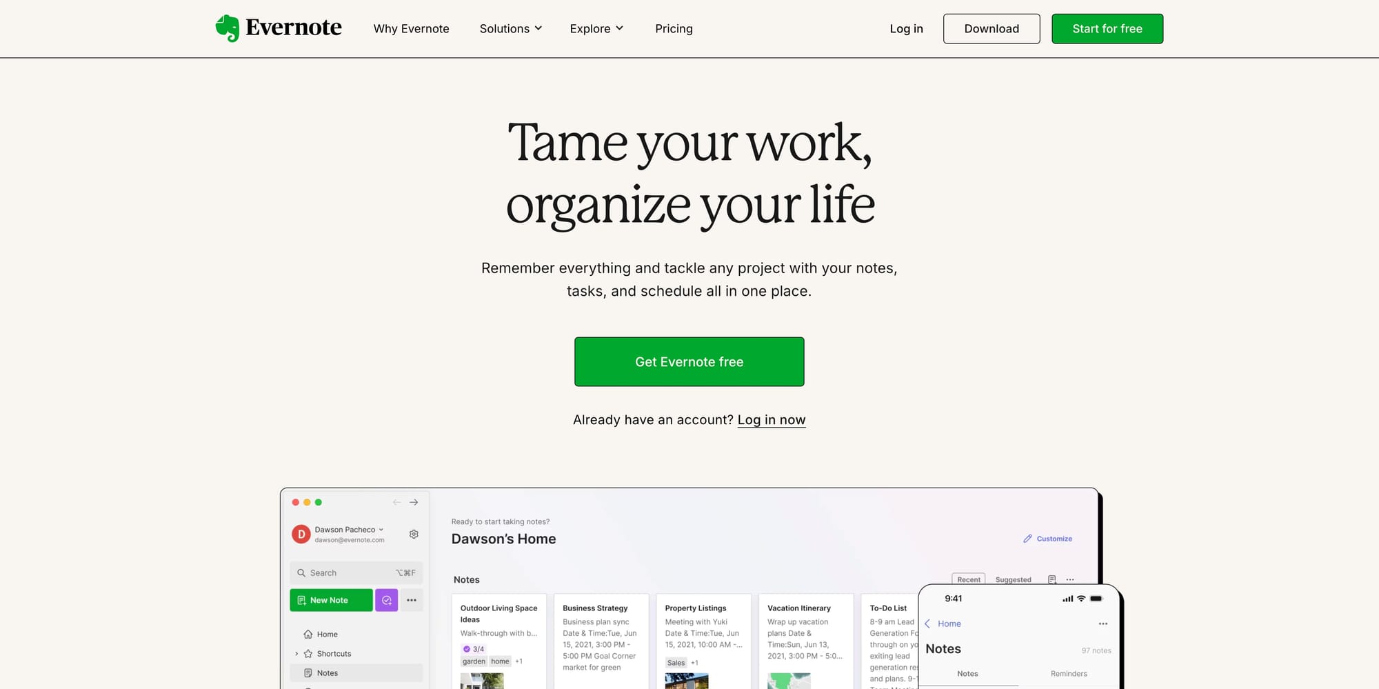 🥇Evernote is an excellent choice for AI-powered note taking. It helps users capture everything from meeting notes to personal ideas seamlessly. Its AI Note Cleanup tool can tidy up messy, scattered notes without altering their original meaning or tone. Evernote can generate a revised version of notes with added structure and improved clarity in just a few clicks. With its AI capabilities, Evernote automatically organizes notes, making them easily searchable and accessible across devices. Whether you're jotting down thoughts during a brainstorming session or saving snippets from articles, Evernote ensures your notes are structured and ready for reference, thus maximizing productivity.