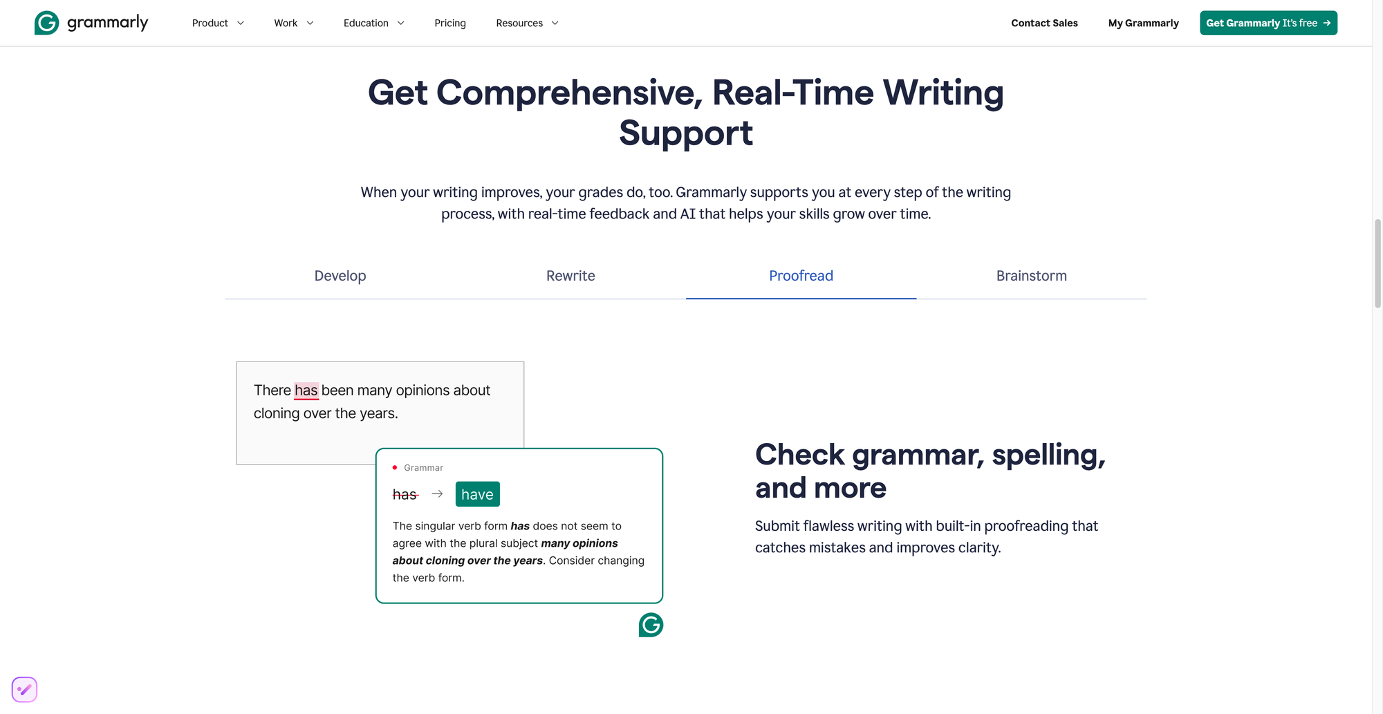 Proofreading and error detection: One of Grammarly's standout features is its proofreading capability, which identifies grammatical errors, spelling mistakes, and punctuation issues before submission.
