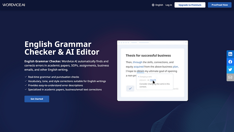 Wordvice AI is a real-time, all-in-one text editor and grammar checker, designed to enhance academic and business writing. It automatically corrects errors and improves the style and tone of English writings, making it an ideal tool for academic papers and professional communications.