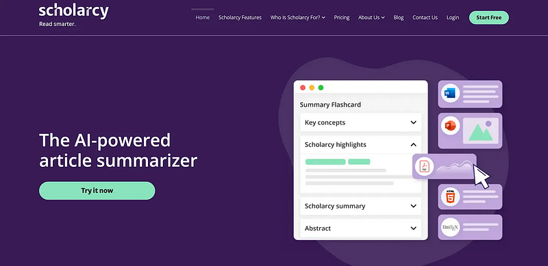 Scholarcy is akin to having a personal academic assistant. It dives into the depths of academic papers, dissecting the complex text to extract and present key information in a comprehensible summary. It’s about making academic content more approachable and less time-consuming to understand.