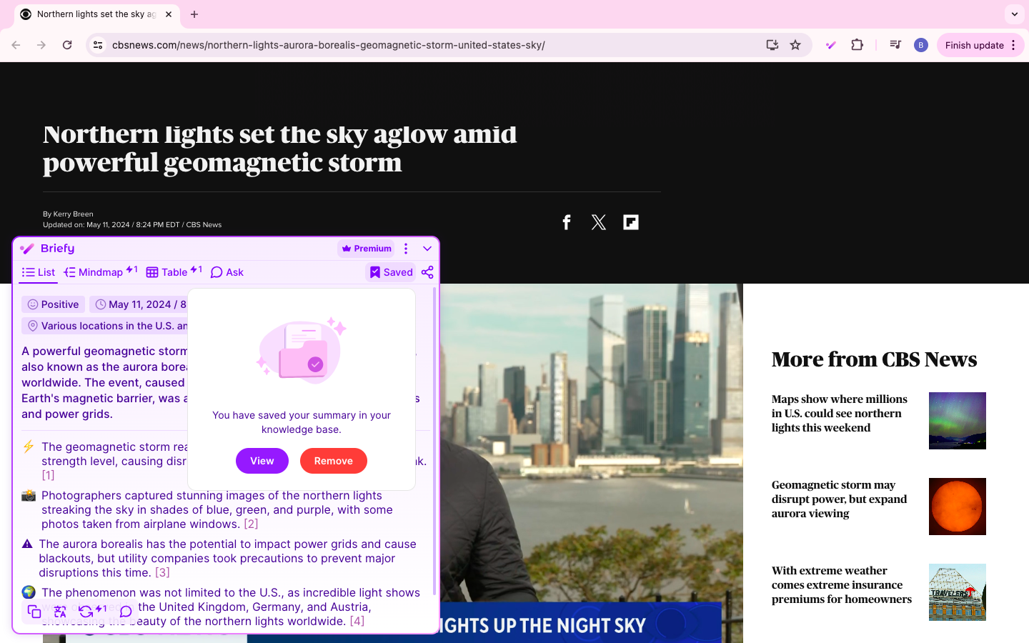 In addition to the convenient Save feature, Briefy offers you the option to effortlessly share your summaries with others by using the permalink.π