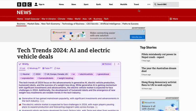 We’ve also made selecting your summary view more convenient. Now, when you click on your Briefy extension, the popup menu includes an option to directly choose your preferred summary view. 👀