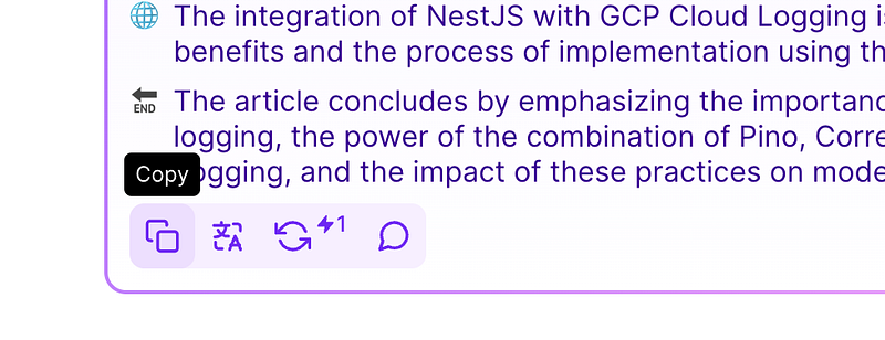 Briefy 1.8.0 introduces another handy tool: the ability to copy summaries in Markdown formats. Located at the bottom-left corner, a ‘Copy’ button enables you to instantly copy the content summary. 📋