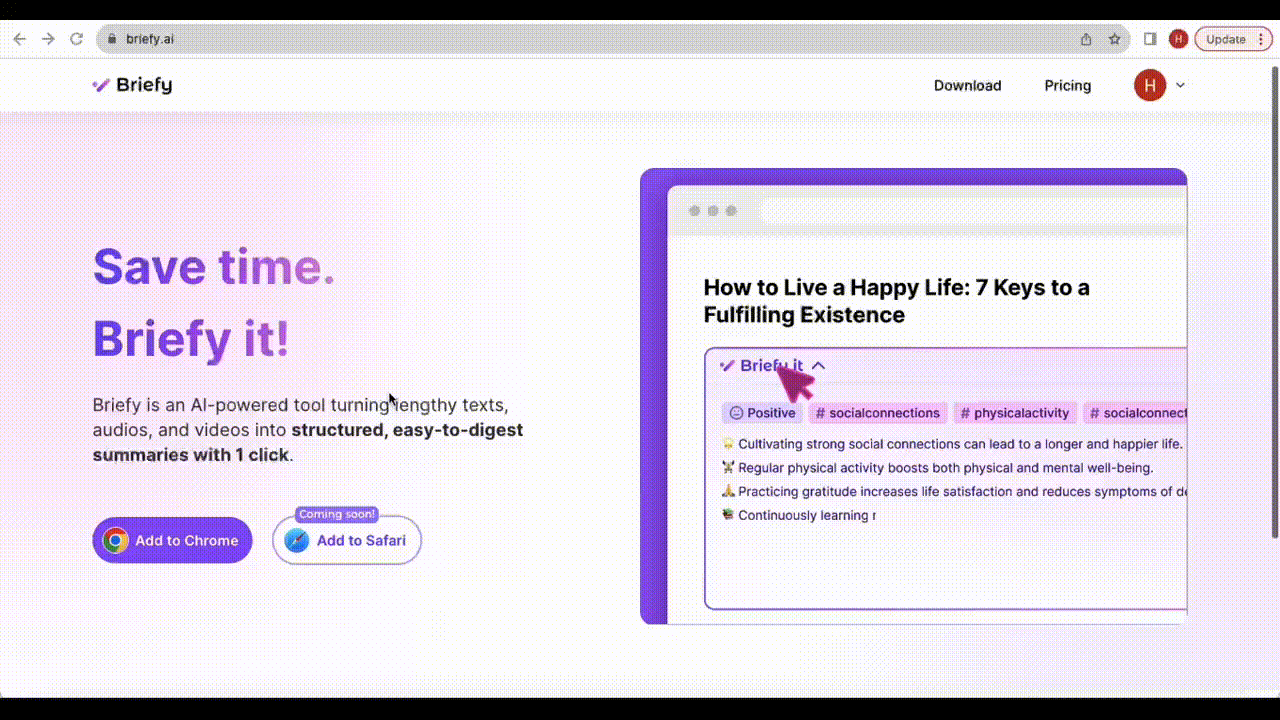 The latest updates now include detailed instructions on how to download and install the browser extension, as well as how to effectively use Briefy once itโs installed.๐