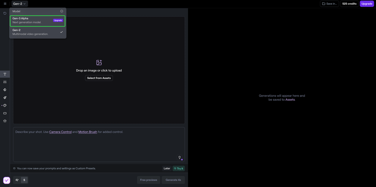- Select the Gen-3 Alpha model from the model dropdown at the top.
