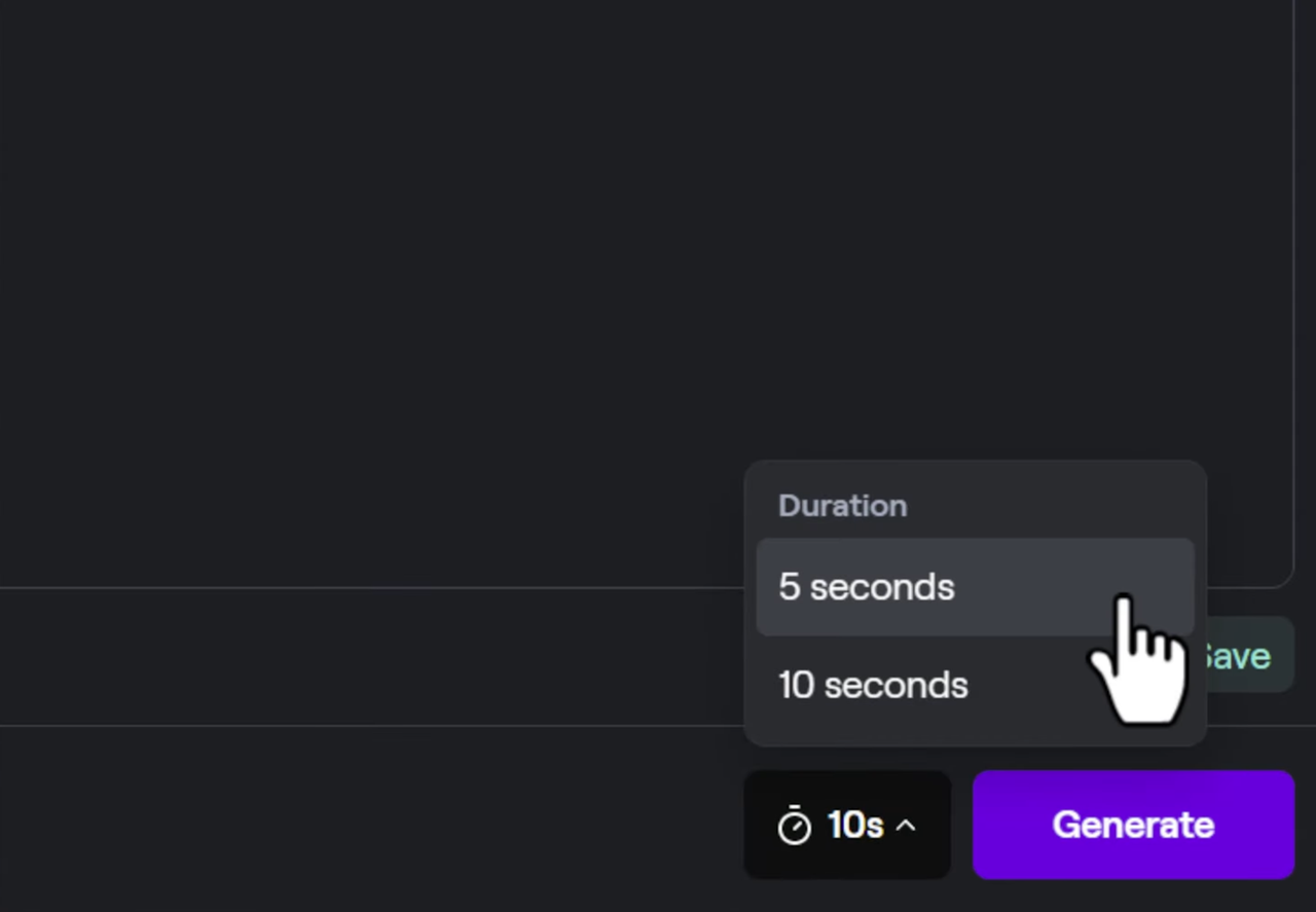 - Enter a prompt and select the duration. You can either choose a 5-second or 10-second generation.