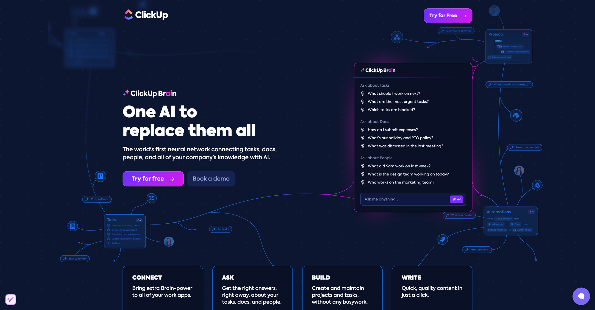 - Enhanced productivity with AI capabilities like ClickUp Brain, which automates tasks and offers intelligent suggestions for task management.