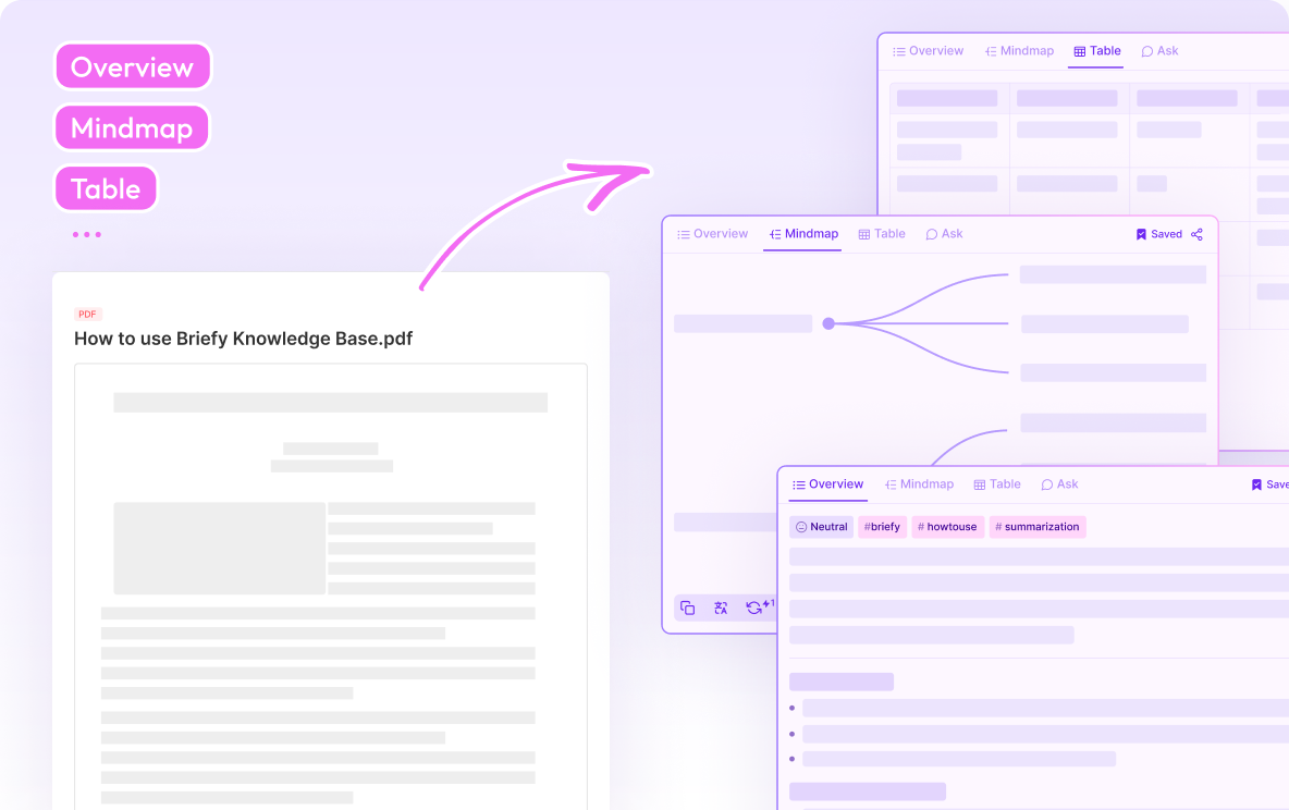 🗃️ Get briefed in your favorite way with just 1 click: Summarize content in various views without manual tasks, including overview, table, mindmap, and timeline.
