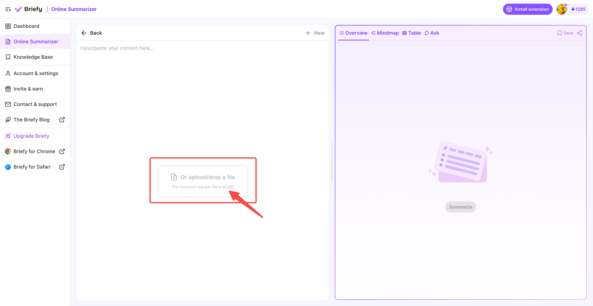 Upload PDF files up to 50MB, and Briefy will summarize both text and images, thanks to its advanced multi-modal summarization capabilities.