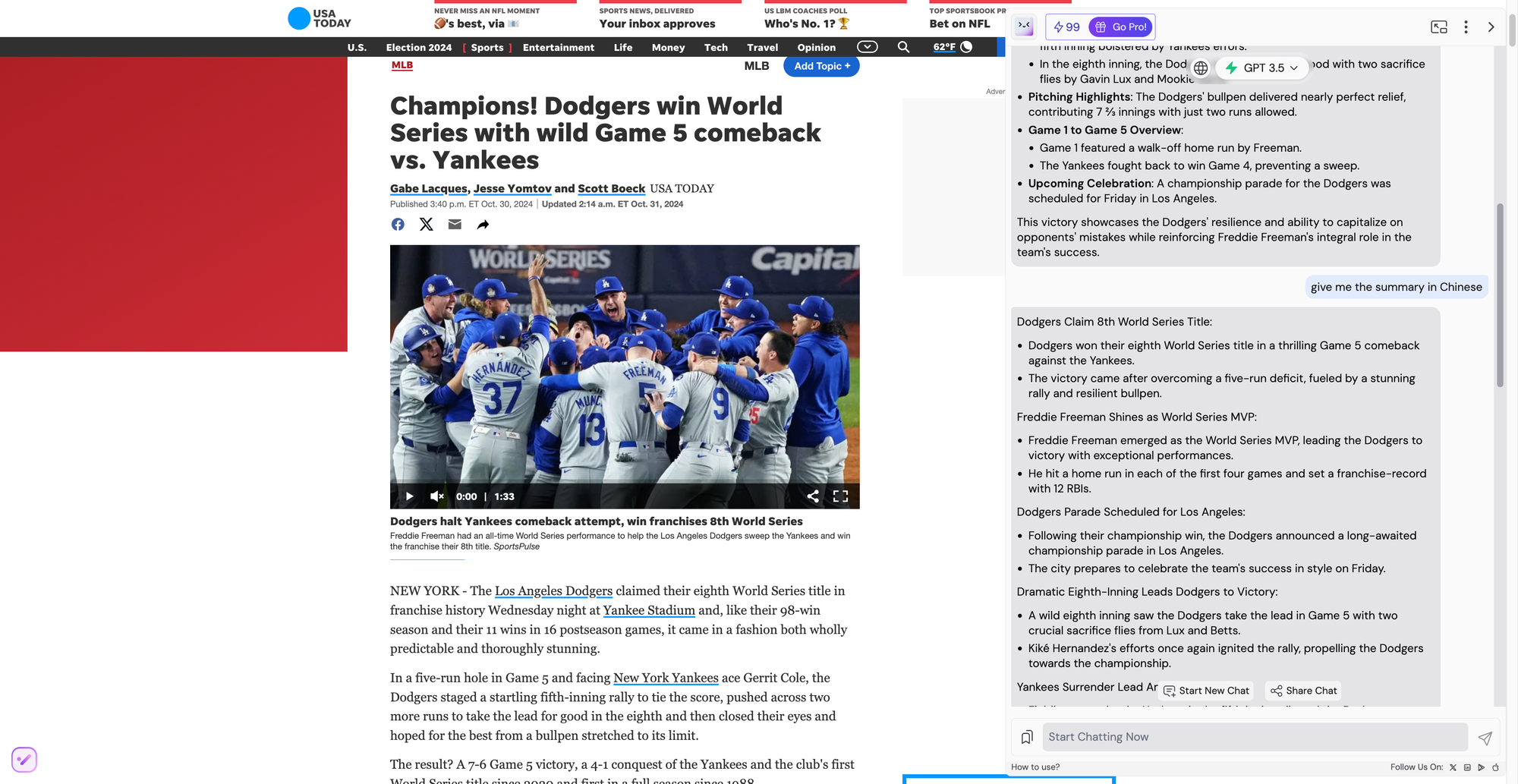 When requesting a translated version of the summary within the chat (e.g., asking for a Chinese version), the tool fails to provide an inline translation. Instead, users can only adjust the language for the entire chat in the settings, which is inconvenient for bilingual users who need quick, context-specific translations.