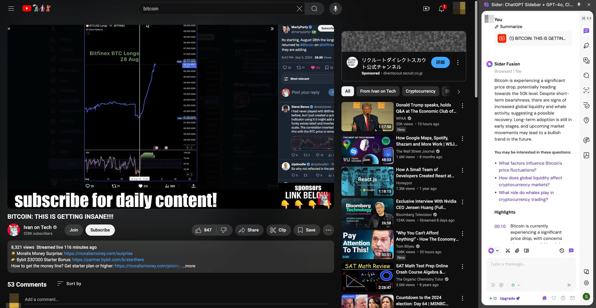 ๐ Recommended questions for deeper understanding: Beyond summarization, Sider provides a "You may be interested in these questions" section, offering recommended questions that encourage users to dive deeper into the video content, enhancing comprehension and fostering further exploration.