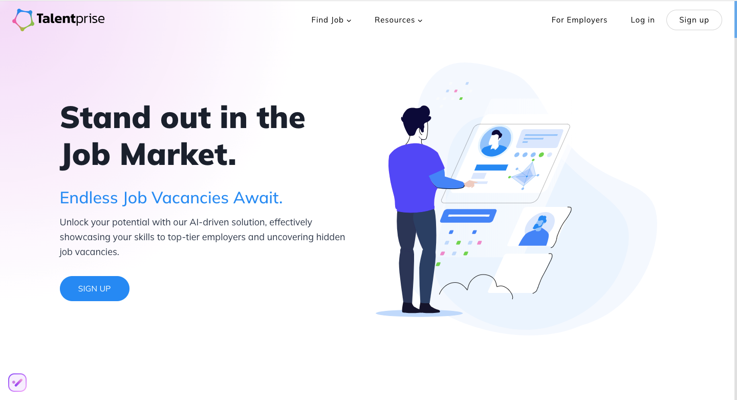 Using Talentprise involves answering a set of questions regarding job preferences such as location, relocation willingness, remote or in-office work preference, and availability to start. Additionally, you will complete your "biography" section, which includes details similar to those found in a resume, like work experience. Next, Talentprise's AI algorithm connects you with suitable job opportunities listed on the platform and presents your profile to potential recruiters. Therefore, after setting up your profile, the process of "applying" to ideal jobs becomes almost effortless and passive.