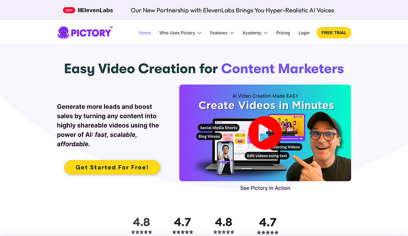 In 2024, Pictory shines as an innovative AI video generator, ideal for a diverse range of users, from businesses to individual creators. Its strength lies in simplifying video production, enabling even novices to craft professional-quality videos swiftly. The platform is tailor-made for producing a wide array of video types, from engaging social media content and impactful marketing videos to educational materials and personal vlogs. Pictory’s user-friendly interface is another significant highlight. The intuitive, drag-and-drop functionality ensures that users can easily navigate through the video creation process, regardless of their technical skills.