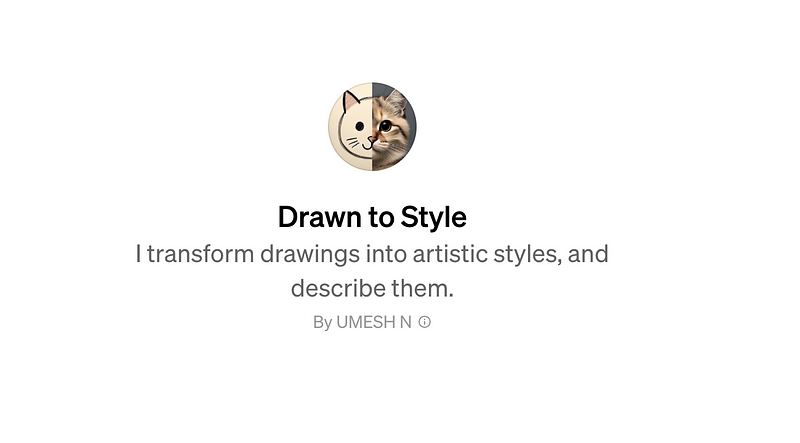 Drawn to Style is a GPT that specializes in transforming user-uploaded drawings into various artistic styles. Users can choose from styles like photorealistic, minimalist, neon minimalist, or request custom styles. It describes the artistic style briefly after transformation. It focuses on diversity and inclusivity in human figures, avoids copyrighted characters or living people, and can assist with related queries using its browser tool, maintaining confidentiality about its operation.